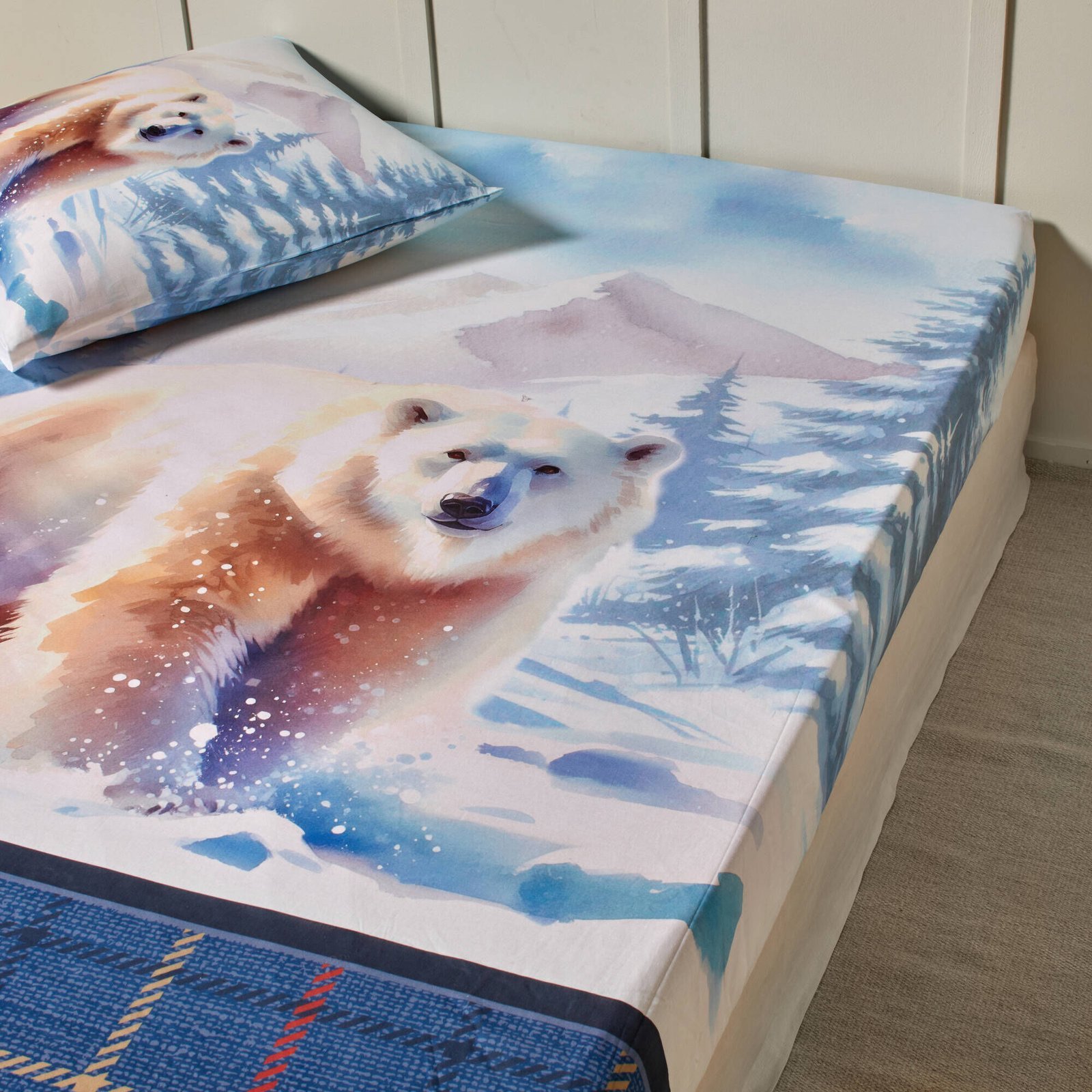 Endormez-vous dans un fabuleux paysage enneigé, sous l’œil protecteur de l’ours polaire ! Imprimé sur un coton doux et résistant, le roi de l’Arctique s’installe majestueusement sur votre ligne de lit, pour réchauffer vos nuits !